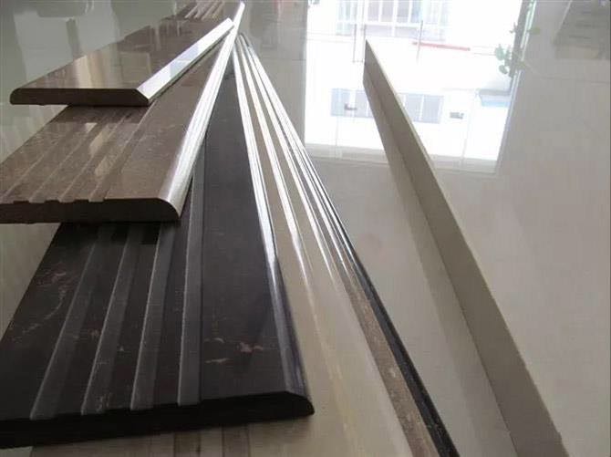拉槽,也称开槽。过往在石材中应用较多,但随着通体大理石瓷砖与瓷抛砖的推出,瓷砖也能做出拉槽的效果。在阶梯上采用拉槽加工,可以起到防滑美观的效果,常见的有双道、三道、四条防滑槽。