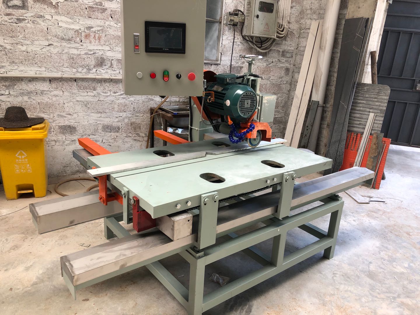功能特点:数控调节尺寸,省时,精度高,误差在0.1mm以内,切割三角更方便,集切割、倒角、磨圆边、开槽等功能一体,【实际就是1.2米普通多功能型切割机的数控升级版】,非常适合房地产工地现场集中加工区,瓷砖店库房等地方使用。